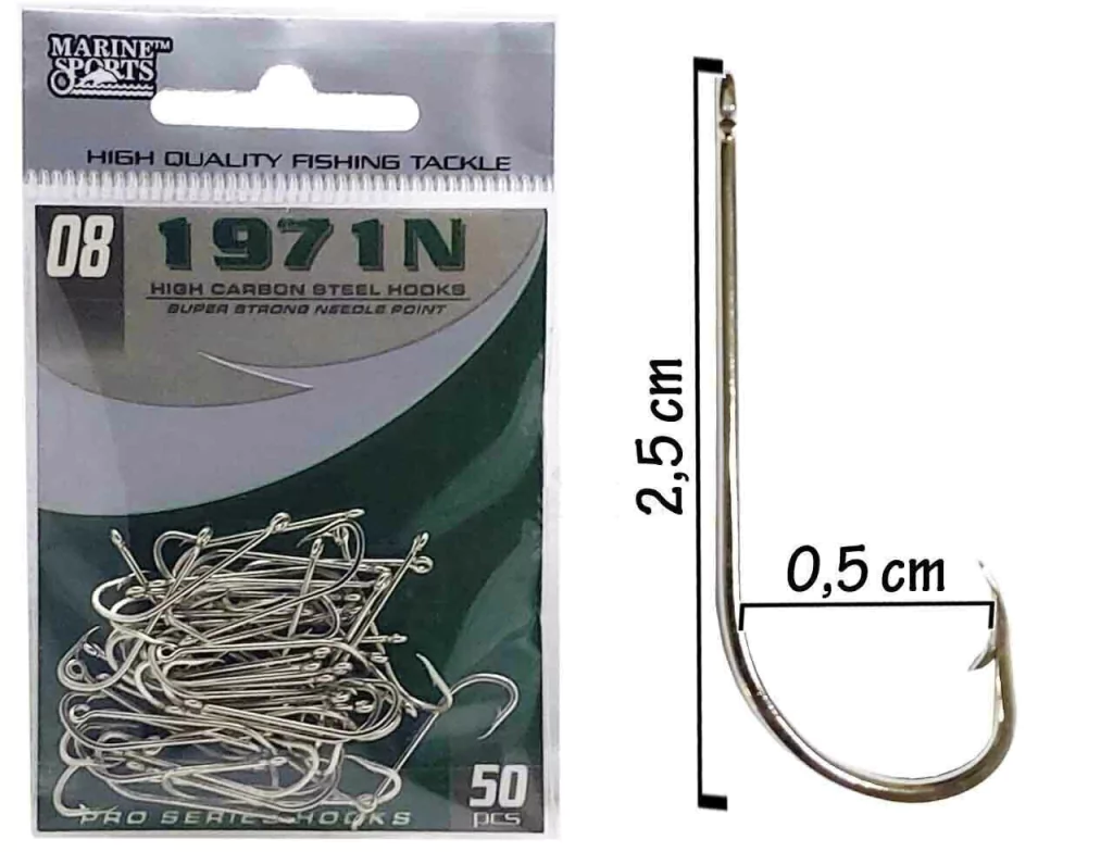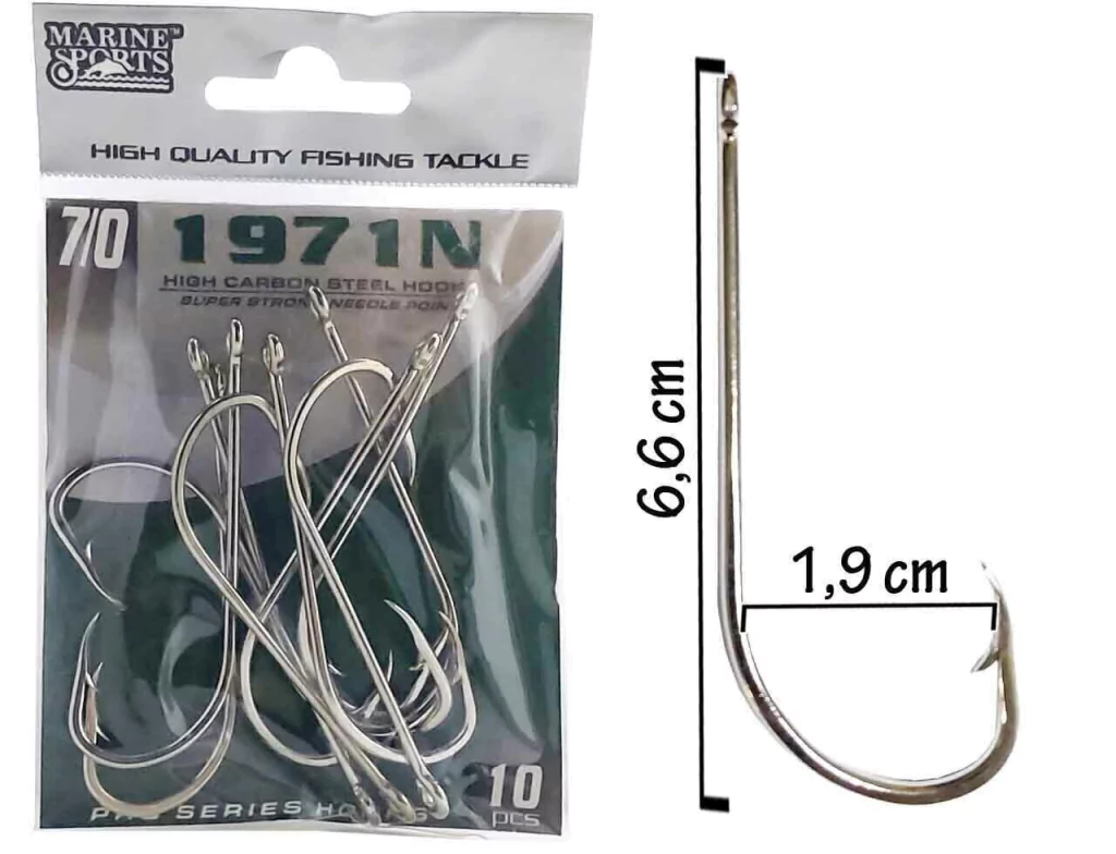 O anzol 1971N da Marine Sports é recomendado para a captura de peixes com dentição.